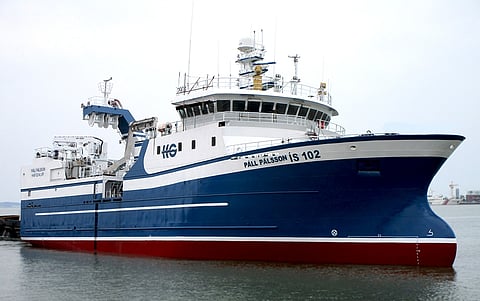 The 50.7 metre by 12.8-metre vessels, Breki and Páll Pálsson, accommodate a crew of 18 and each has fishroom capacity for 525 460-litre tubs.