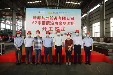 Jianglong Shipbuilding has cut the first steel for the second tour boat in a series ordered by Zhuhai Jiuzhou Shipping.