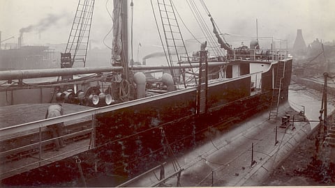 Tobol, with its distinctive "turret deck" design, was built in Sunderland at the turn of the 20th century and was operated as Cheltenham by a steamer company until it was captured by Russian forces in 1904.
