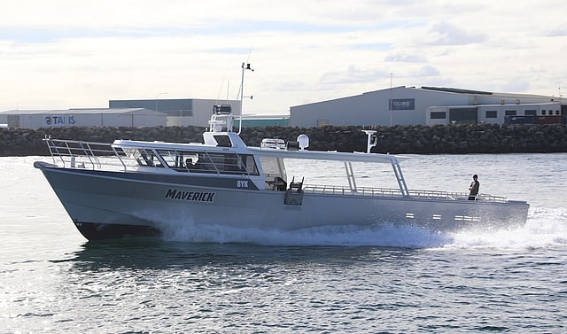 Built by Shoreline Marine Fabrication at a cost of approximately AU$1.3 million (US$0.93 million), Maverick can hold 46 baskets or 1.25 tonnes of southern rock lobster in her salt-water tanks, plus the insulated racks along the transom carry one tonne of bait to replenish up to 140 lobster pots during her three- to four-day excursions into Victoria's Western Zone, 45 minutes steaming time from home. The vessel was designed by Allseas Marine Designs with a top speed of 24 knots.