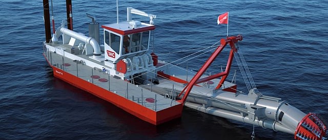 The non-self-propeller vessel is capable of dredging compacted soil types and materials, such as clay and rock. Duties will include land reclamation and construction of new harbour basins and canals.