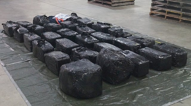 The haul was found packaged in denim bags inside a shipping container described as containing wood products.