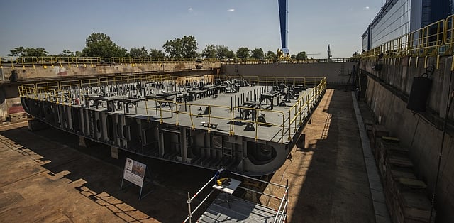 The keel laying of the ASRV took place at Damen Shipyards Galati, Romania. Placing a coin under the keel of a ship at the start of construction is a traditional part of the shipbuilding process.
