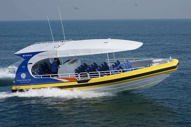 A trio of Yamaha 250hp (186kW) outboards power Arafura, giving an effortless 25-knot cruising speed. They are ideal propulsion for a remote area. They offer immediate redundancy if one motor dies, with the remaining pair easily able to maintain speed.