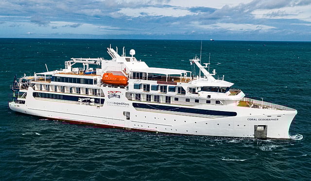 Coral Geographer formally joined the Coral Expeditions fleet upon its delivery in March of this year. It departed Cairns on its maiden operational voyage the following month, embarking a small group of guests as it sailed along Australia's eastern seaboard.