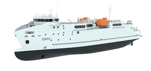 Named Dory 2, the vessel will have a steel hull, an aluminium superstructure, a length of 71 metres, accommodations for 140 passengers and 17 crewmembers, and a main cargo deck with a total area of 494 square metres. The cargo deck will be able to house a combination of 10- and 20-foot containers, palletised freight, and vehicles.