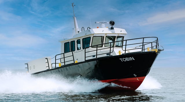 The boat's custom design is fit for conducting river condition surveys to improve the safety of marine operations. A deep-vee variable deadrise monohull ensures a smooth and stable ride while a raised pilothouse provide the coxswain with excellent all-around visibility. As with Silver Ships' other aluminium boats, Tobin's hull is designed for strength and durability in fulfilment of American Bureau of Shipping rules for high-speed naval craft.