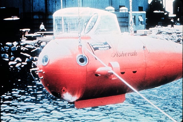 Recent advances in observing tuna from underwater viewing chambers on the bureau's fishery research vessel Charles H. Gilbert just whetted the appetite of the laboratory to acquire more experience in observing tuna and bottom-dwelling organisms. The first submarine to be tested was Asherah, a two-man submarine that had just been delivered to its owner, the University of Pennsylvania Museum, but was chartered in 1965 by the Honolulu Laboratory from the Electric Boat division of General Dynamics Corporation.