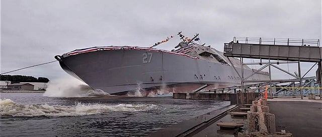 The future US Navy littoral combat ship (LCS) USS Nantucket was christened and launched into the water at the Wisconsin facilities of Fincantieri Marinette Marine (FMM) on Saturday, August 7.