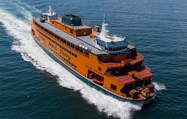 The 319- by 69-foot (97- by 21-metre) SSG Michael H. Ollis has a draught of 13 feet (4.11 metres) and capacity for 15 crewmembers and 4,500 passengers. It will provide commuter services between Staten Island and Lower Manhattan, transporting commuters and tourists along a 22-minute, 5.2-statute mile (4.5-nautical mile) route that will also include Ellis Island where the famed Statue of Liberty stands.