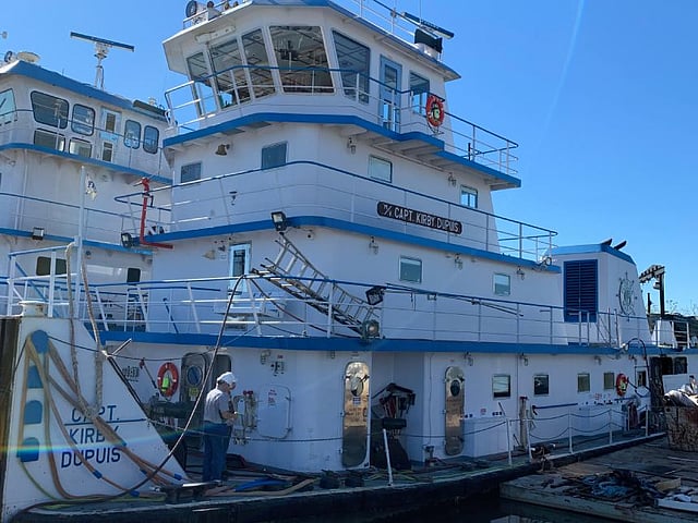 The towing vessel Capt. Kirby Dupuis was pushing loaded dry cargo barges on the Ohio River when a fire broke out on its port side engine on November 9, 2021.