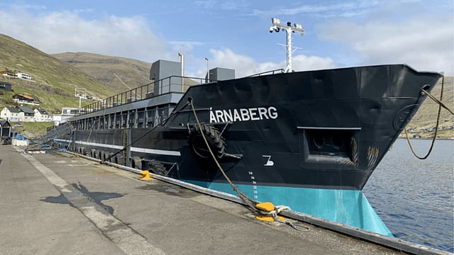 The converted vessel, which has been named Arnaberg after a town on Sandoy island in the Faroes, measures 75 metres long and has capacity for up to 700 tonnes of feed to support Mowi's exposed salmon farming operations. An additional five tonnes of hold space will be for feed for lumpfish.