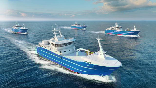 Featuring a large freezer capacity, they will be equipped with an auto line-hauling system through a moon pool, and a fish factory for processing of fish and cannery.