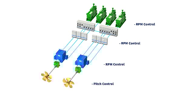 VariAC operates on an AC grid with variable frequency in the range of 45 to 65 Hz, and was designed to give ship operators more efficient and precise control of power-load and ship-speed via the seamless regulation of propeller speed (rpm) and pitch in three different power-modes, low, medium and high.