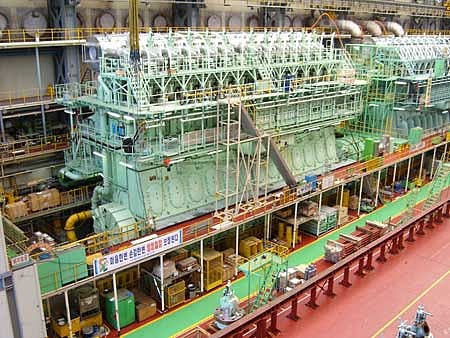 MAN Diesel & Turbo has announced that its first super-long-stroke, 90 centimetre bore "Mk 9" engine has successfully completed test bed trials at Hyundai Heavy Industries Engine & Machinery Division. The "S90ME-C9.2" covers the new trend in container shipping demanding smaller bore, super-long-stroke engines with lower propeller speeds.