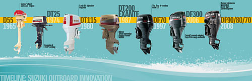 Outboard engines have come a long way since Suzuki first entered the market with the D55 (4.1kW, stroke-stroke) in 1965, applying the company's motorised vehicle expertise to the marine sector.