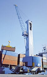 Model 6 crane, completed by Gottwald, which claims to be the only manufacturer of mobile harbour cranes with electric drive technology. The result is that Gottwald is able to improve the efficiency of mobile harbour cranes which cannot be hooked up to an external power supply due to the quay infrastructure, which empowers terminal operators to sustainably reduce fuel consumption, fuel costs and exhaust gas emissions.