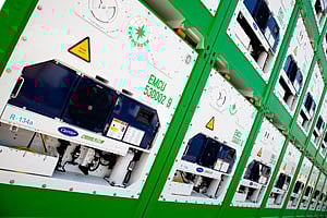 Carrier Transicold's PrimeLINE are designed to reduce shipboard power generation needs from refrigerated container shipping, and as result cut related emissions. According to the company, the PrimeLINE system has the highest deep-frozen capacity of any unit using R-134a, the non-ozone depleting refrigerant with the lowest global warming potential of all contemporary container refrigerants. Fitted with a digital scroll compressor, the PrimeLINE's efficiency results in lifecycle costs that are significantly lower than rival units as energy is the single largest cost component.