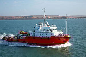 Measuring 53.8 metres in length on a beam of 13.8 metres and a 4.5-metre depth, the 988DWT vessel is powered by a 2,385kW engine and has berths for 38 personnel.