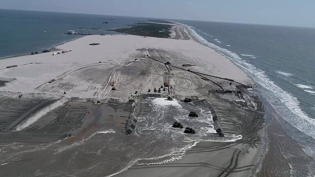 The rebuild will be constructed entirely from sand dredged from federal waters on the Outer Continental Shelf, which the agencies stated will make the project more resilient than the original design. The sand will be sourced from two borrow sites on the Ship Shoal sand body.