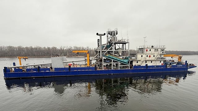 The vessel's key equipment includes a sorting plant that can help separate various soil types from each other after being brought on board. For instance, when a mixture of sand and gravel is extracted, the sand and the gravel will be separated, and either type of soil will become readily available for later use.