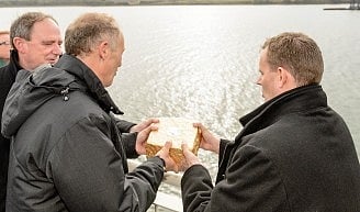 The first stone in the construction of the new port was thrown over the railing and into Kalundborg Fjord, where the new port area will be completed by February 2019.