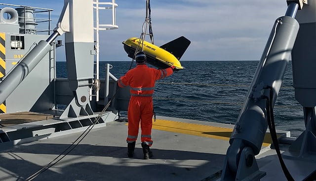JFMS procured the multi-purpose support vessel Ievoli Cobalt, mobilised with a towed side-scan sonar and sub-bottom profiler solution, together with a work-class remotely operated vehicle, Triton XLX WROV, for visual inspection of targets identified in the sonar data.