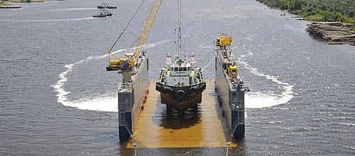 The dock will operate in sheltered water by a crew of three.