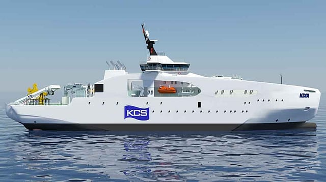 Transit at service speed with two engines running efficiently will optimise fuel consumption. Bollard pull will be 80 tonnes, with a range of 10,000 nautical miles, and DP2 class.