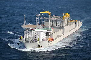The 'Simon Stevin' will mostly be deployed in offshore applications, such as the laying of oil and gas pipes at great depths; the vessel can level the seabed and dump rocks down to a depth of 2,000 metres. According to Jan de Nul, the fall pipe can process rocks with a diameter up to 400mm, a figure greater than any other fall-pipe vessel in service.