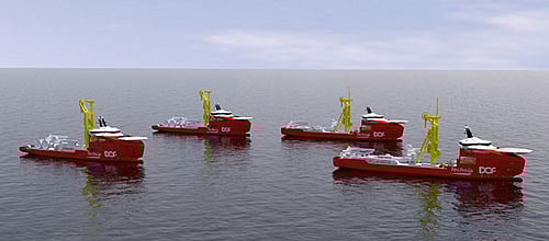 The new designs have been developed in close co-operation with DOF and Technip. The Norwegian-built vessels will carry pipe lay towers rated at 650 tonnes, among the largest ever in the industry.