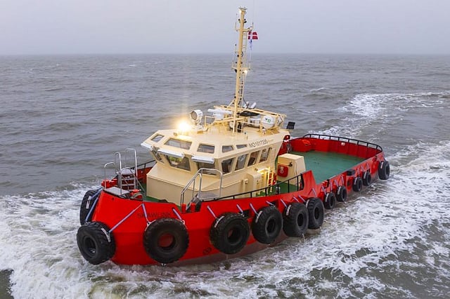 The propulsion setup delivers a bollard pull of 24 tonnes, a top speed of 11.7 knots, and a service speed of nine knots.
