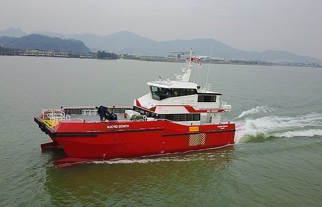 Njord Zenith has the capacity to transport up to 24 offshore personnel and includes an innovative bridge design with full-height front window for improved fore deck visibility and for docking while transporting containers.
