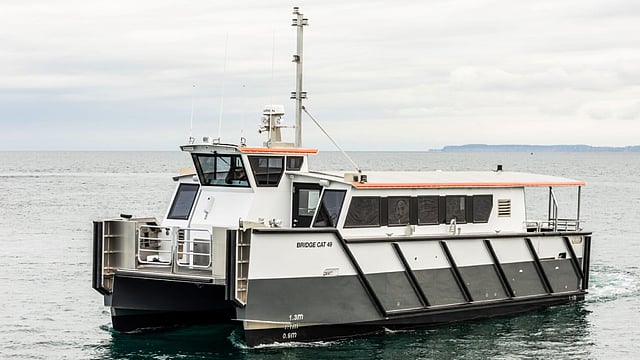 The aluminium-hulled Bridge Cat 49 can accommodate up to 47 passengers and is built to meet Transport Canada (TC) passenger vessel requirements, particularly TP 11717 passenger vessel regulations, ensuring operational safety in Canadian waters.