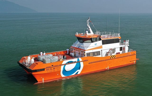 Yu Feng Zhe 001 was designed specifically for offshore conditions in China. The aluminium crewboat has an LOA of 32.1 metres, a beam of 10 metres, a design draught of 1.82 metres, capacity for 12 technicians and 10 tonnes of cargo, and equipment for ensuring safe crew transfers to and from offshore wind turbines even in wave heights in excess of two metres. The vessel is designed to work and stay offshore for extended periods and has a large deadweight capacity to allow this functionality.