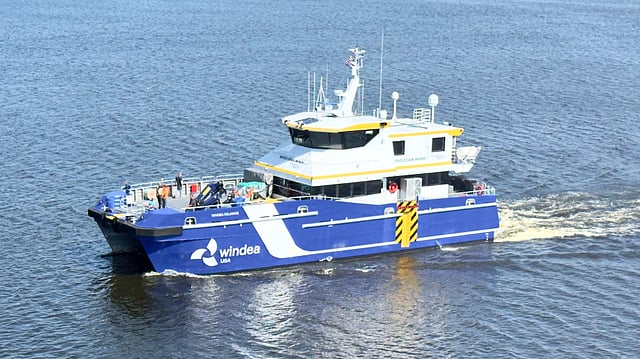 Windea CTV, a partnership of Hornblower Wind and MidOcean Wind, has taken delivery of the third vessel in a series of windfarm crewboats to be built by St Johns Ship Building (SJSB) of Palatka, Florida.