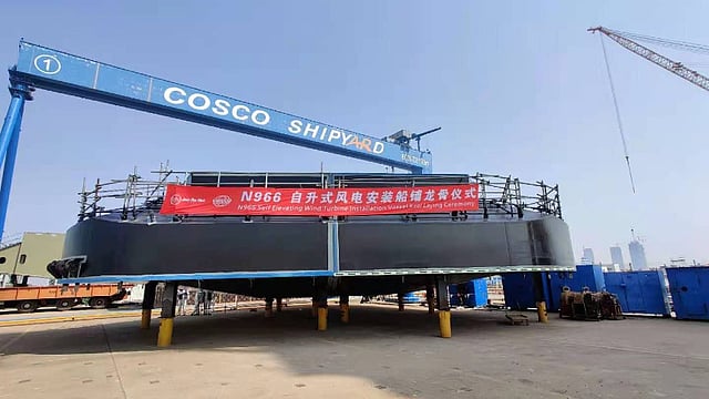 China's COSCO Shipping Heavy Industry has laid the keel of a new jackup installation vessel ordered by Jan De Nul Group.