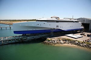 Austal has launched its next generation 102-metre high speed trimaran vehicle-passenger ferry at its Western Australian facility.