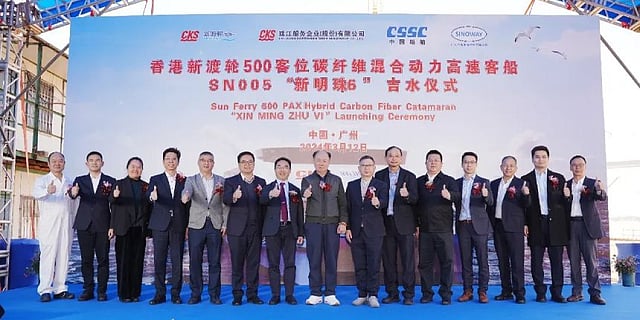 Chinese shipbuilder Guangdong Zhongwei Composite Materials has floated out a new hybrid fast catamaran ferry ordered from the company by Hong Kong transport operator Sun Ferry.