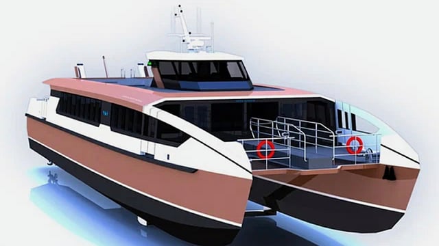 Each vessel will measure 38 by 10 metres and will have capacity for 148 passengers plus four crewmembers. Sailing at 34 knots will yield a range of 700 kilometres.