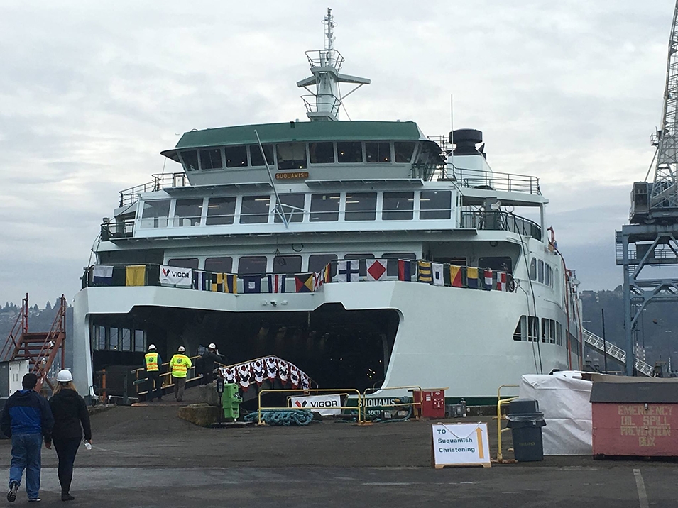 Washington State Ferries has christened Suquamish, the fleet's fourth Olympic-class vessel in Seattle.