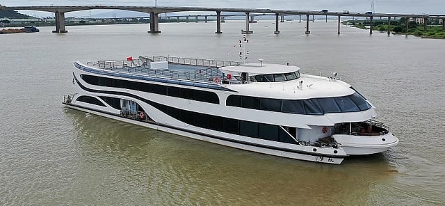 Named Meng Hang, the vessel has an LOA of 54.2 metres, a beam of 15.2 metres, hybrid diesel-electric propulsion, and capacity for 556 passengers. It will be the largest tour boat in operation on the Qiantang River once it enters service.