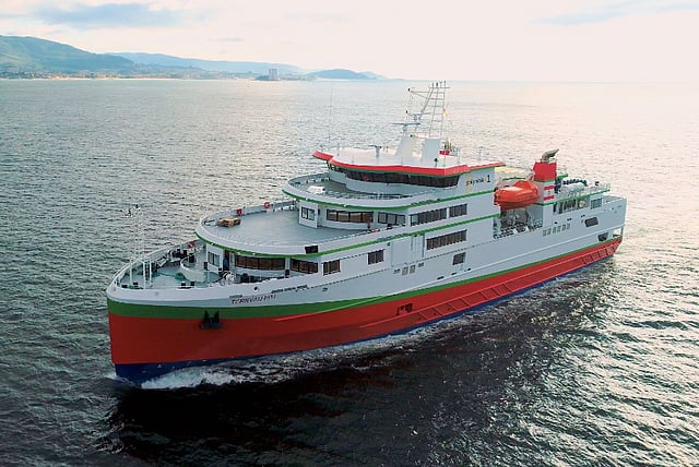Two 2,652kW diesel engines propel the ferry to a maximum speed of 17.5 knots and a cruising speed of 16 knots.