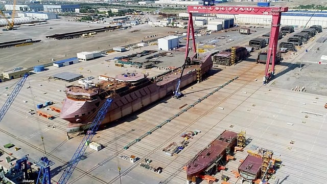 Construction of a new Ro-Pax ferry being built at the Baku Shipyard for the Azerbaijan Caspian Shipping Company (ASCO) is continuing on schedule. 70 per cent of the overall project work has already been completed, with hull and engineering works now 99 per cent accomplished.