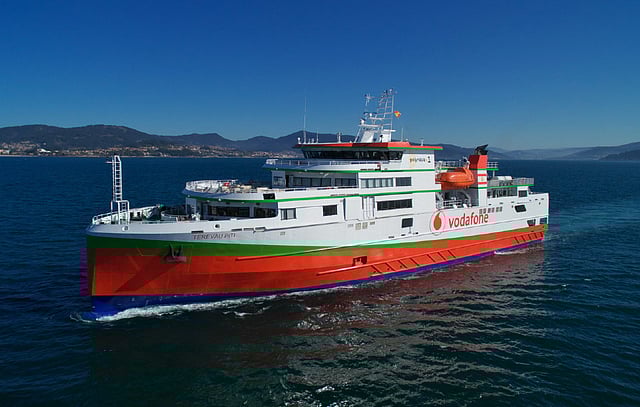 Two Anglo Belgian Corporation diesel engines that each produce 2,652 kW at 1,000 rpm propel the ferry to a maximum speed of 17.5 knots and a cruising speed of 16 knots. A pair of bow tunnel thrusters provide enhanced manoeuvrability for berthing and unberthing while an optimised hull form enables improved seakeeping performance, thus providing comfort at sea for passengers as well as low fuel consumption.