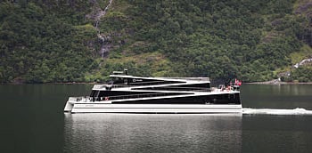The catamaran's design also reduces waves and wash on the vulnerable shores of the narrow fjords.