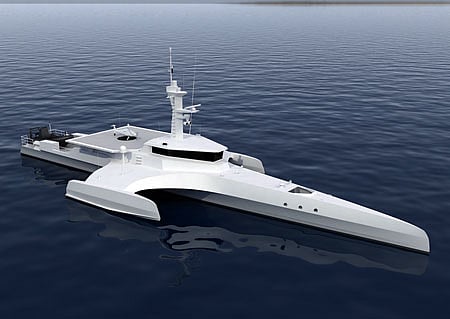 A multi-purpose vessel with a range of capabilities, the 'Ocean Eagle 43' concept is suitable for operations including the protection of coastal zones or strategic offshore infrastructure, patrol and response, or conducting electronic warfare or intelligence gathering via the launch and recovery of 300-kilogram aerial drones (UAVs).