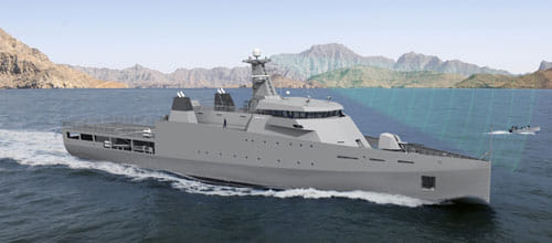 There are three newly developed multi-mission locations – namely the bridge, hangar and bay. The Multi-Mission Bay (MM Bay) can be equipped with dedicated mission modules (e.g. mission containers) for missions such as counter piracy, counter-drug operations, anti-mining warfare (AMW), search-and-rescue (SAR) and so on. The MM Bay is also equipped with a nine metre RHIB (rigid-hulled inflatable boat), which can be launched over a dedicated slipway through the rear of the vessel while the OPV is sailing.