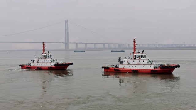 China's Jiangsu Zhenjiang Shipyard delivered two ASD firefighting tugs in a series to an unnamed local operator on Friday, March 5.