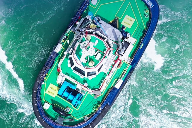 Two Caterpillar 3512 engines that each produce 1,765 kW will deliver a bollard pull of 60 tonnes and a speed of 12 knots.